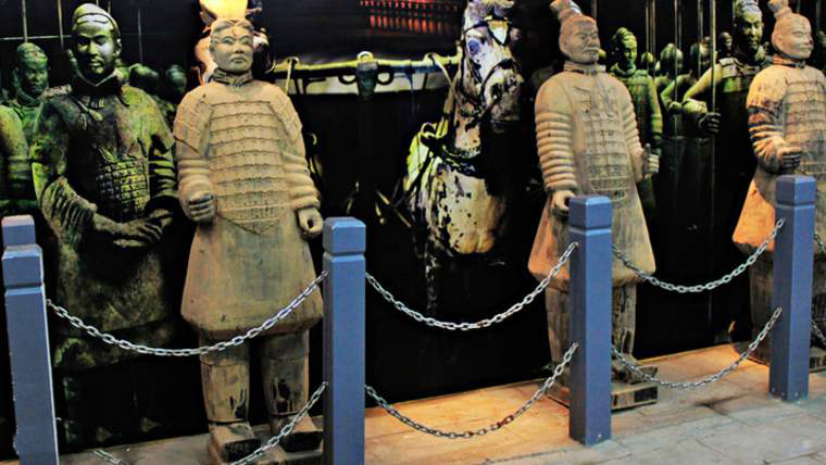 秦俑探秘是通过利用虚实场景、立体电影、动感特技等高科技游乐技术营造的神秘旅行,迷宫般的千年秦陵古墓里,幽深黑暗、机关重重,秦始皇突然复活,恐怖异像不断出现……