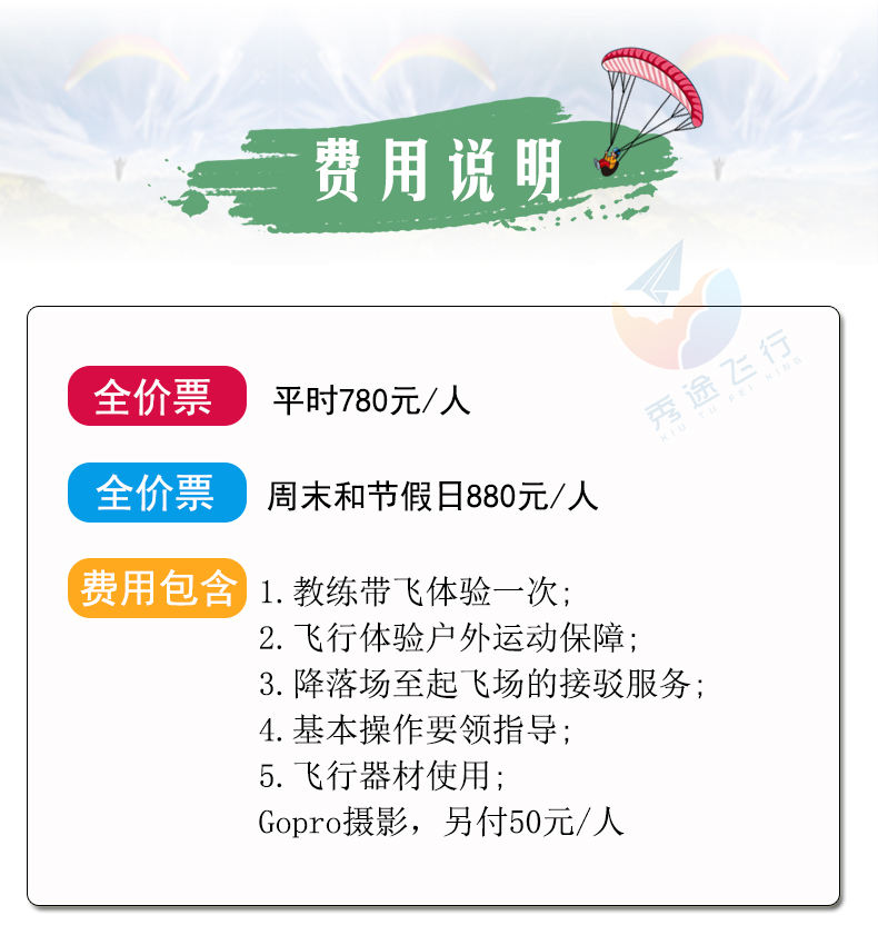 教练带飞体验票一次,飞行安全保障,基地上下山车程