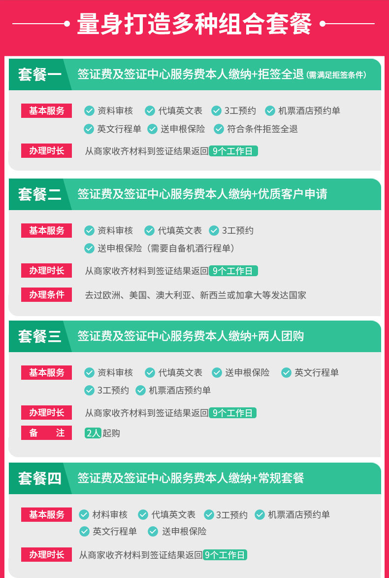 2. 若相关办理部门(包括并不限于使馆、政府部门、签证中心、保险公司等)有政策性费用调整,差额需由客人自行承担,敬请谅解。