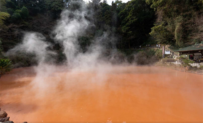 血池地狱是日本的天然地狱,在《万叶集》和《文后国度风土记》中有“赤汤泉”和“赤池”等描述。含有氧化铁、氧化镁等的赤热泥浆是在地下高温高压下自然化学反应生成的,从地层中喷发并堆积,因此整个池塘都被染成了红色。