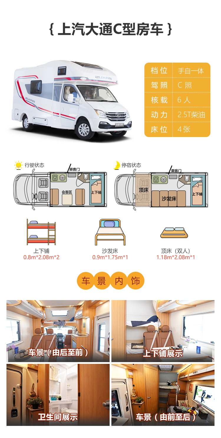 3. c型车免费配备3套床品;