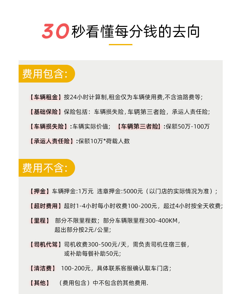 2. 车辆清洁费100元-200元/辆车/次(清洁费需要下单时支付);