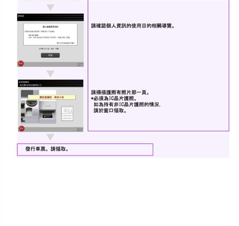 - 旅行中请务必随身携带护照。进出车站时,站务人员可能会要求提出护照证明,届时请配合查阅。