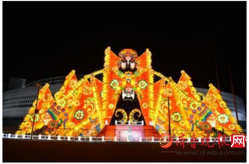 到达园博园三号大门入口,首先映入眼帘的是以“八仙贺岁”为样本进行艺术创作的巨型彩灯拱门,长40米,高达15米,几层楼高的卧葫芦形大门和最上的城楼,浓墨重彩,尽显大国气派。作为自古以来被广泛应用的中国传统元素,场内装饰的盛放牡丹图案,富贵祥和,充满浓浓的喜庆年味。五彩绸缎、镶金勾边、分色裱糊,本届灯会众多参展灯组的制作之精良,细节之考究,加上取材的创新和史无前例的超大规模,堪称艺术品级别。