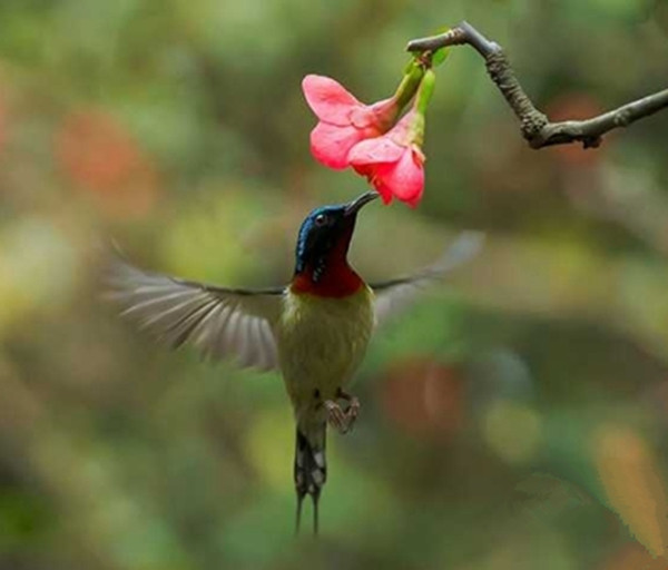 海棠花的盛开会吸引各种鸟儿前来吸食花蕊,其中有一种名贵的鸟儿叫太阳鸟,太阳鸟羽毛色彩丰富,飞行速度快,体态优美,有“东方蜂鸟”的美誉。每年一到海棠花盛开,来自全国各地的摄鸟人就是奔这种鸟儿来的,鲜艳的海棠花配上色泽漂亮的的太阳鸟,构成了一幅幅美的图画,摄影师们为追求这样的美图乐此不疲。