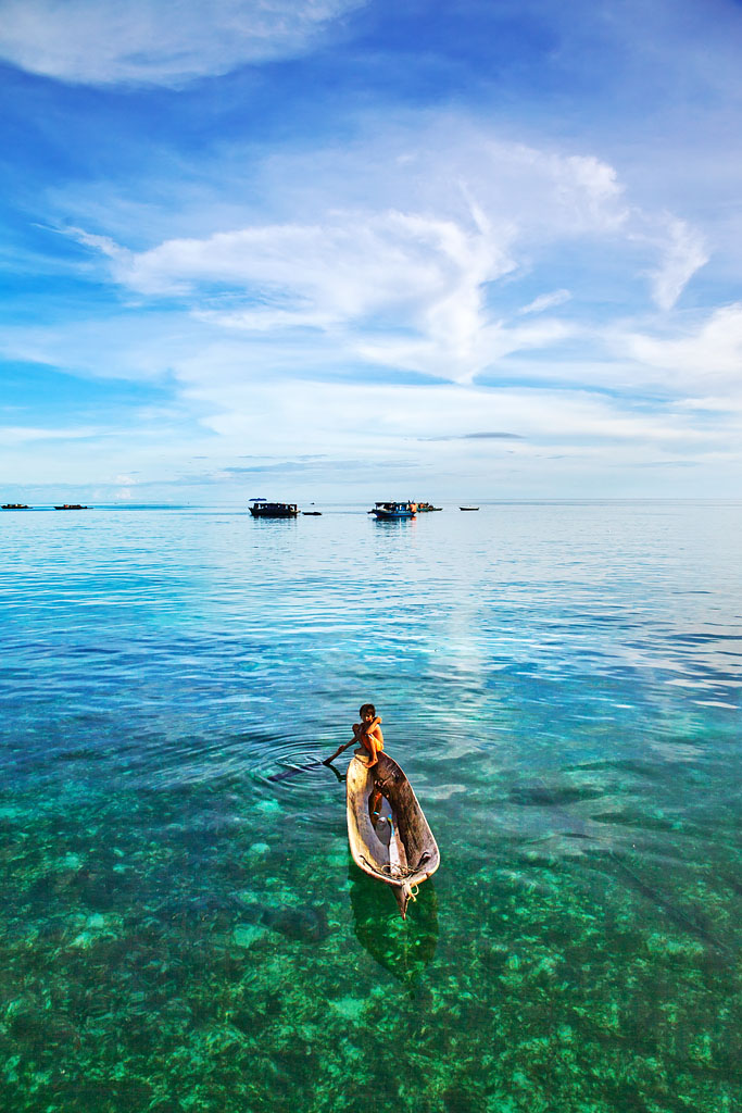 夜幕降临,巴瑶人会把船只停靠在小岛附近的红树林里,有时候有五六艘,有时候一整个巴瑶部落都汇集起来,会有四五十艘船。他们在船尾生火,或炙烤海贝,或煮炖海鲜,对于他们而言,与大自然亲近是不可或缺的。