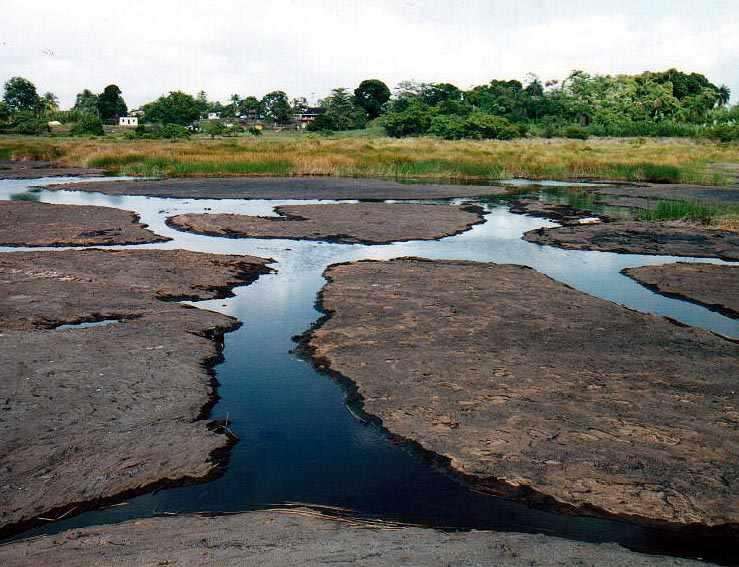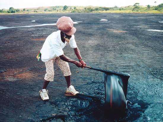 该湖黝黑发亮,就像一个巨大精致的黑色漆器盆镶嵌在大地上。湖面沥青平坦干硬,不仅可以行人,还可以骑车。湖中央是一块很软很软的地方,在那里,源源不断地涌出沥青来。因此,被人们誉为“沥青湖的母亲”。这里是世界上最大的沥青产地之一,所出的沥青质量很好,有“乌金”之称。目前每年产量3万吨左右,90%出口中国。
