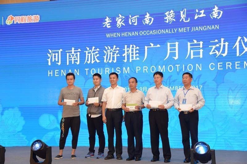 河南省旅游局局长寇武江、上海市旅游局局长徐未晚、同程国旅CEO吴剑共同启动了“老家河南豫见江南”河南旅游推广月活动。为期一个月的河南旅游“长三角”地区宣传推广活动正式拉开序幕。