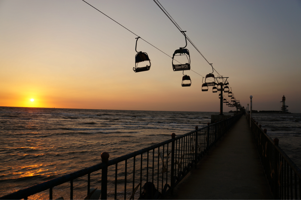 万里长城像一条巨龙横亘在华夏大地之上,东端在山海关城南四公里处入海,犹如龙头高昂,成为明长城东部起点,因此称为“老龙头”。老龙头景区由宁海城、入海石城、澄海楼、南海口关、龙武营、海神庙等组成,被称为“人类历史上的千古奇观”。老龙头雄伟壮观,海滩空气清新,沙软潮平,是海上观日出的绝好去处。