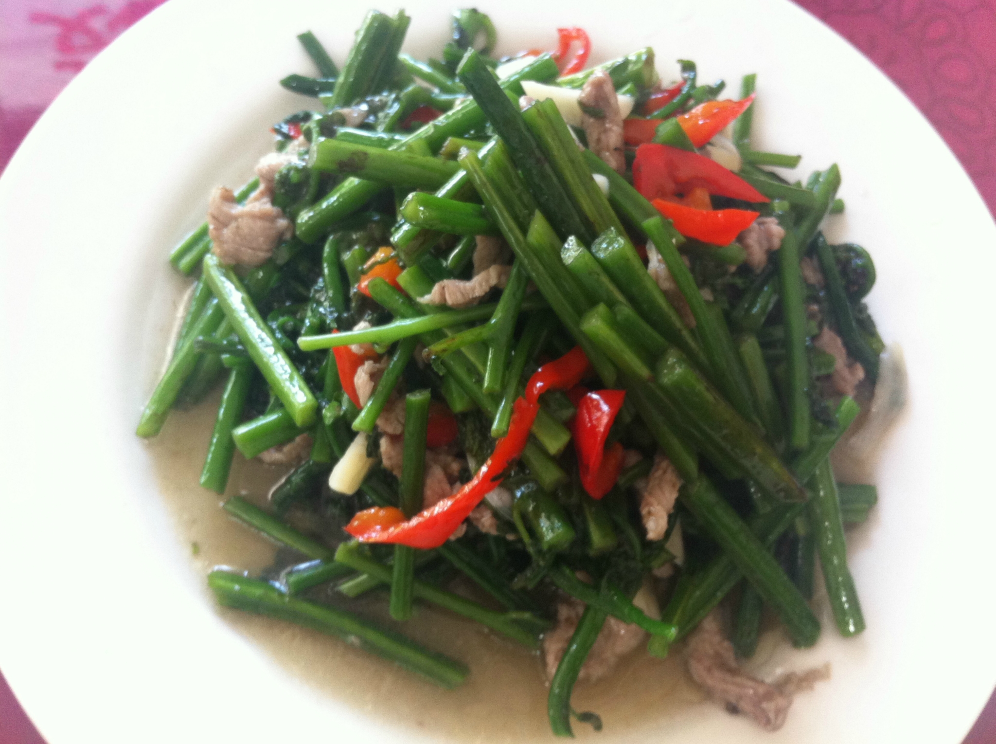 蕨菜是黄山民间常食的野菜,营养丰富,富含维生素C、粗蛋白、粗纤维和少量的钙、磷等物质,有清热解毒、防癌强身、活血止痛等功效。制作时将鲜蕨菜除杂洗净后,切成小段,用素油加佐料炒熟即可,味道清香、口感润滑。