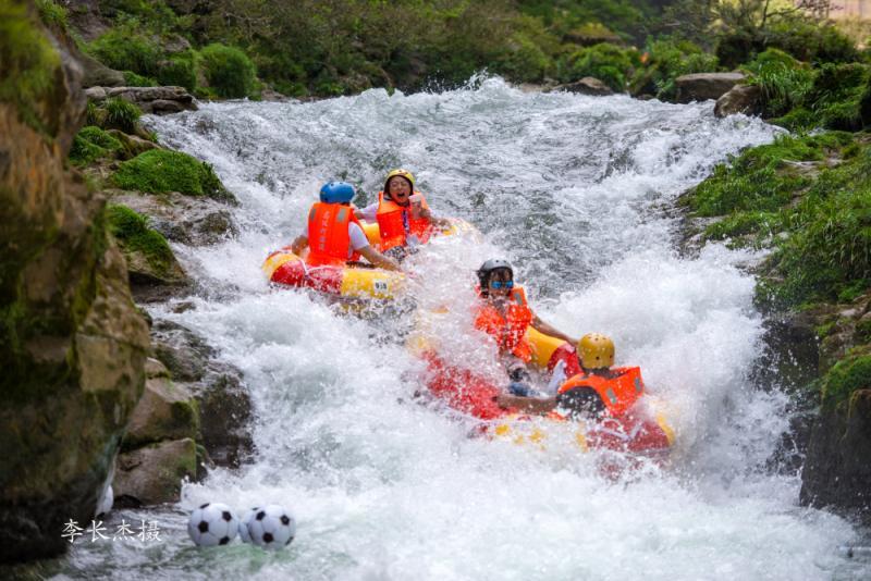 据介绍,高过河有着"休闲避暑胜地,度假漂流天堂"之称,因整个景区一年四季瀑声不断,蝉鸟唱和,蔚为壮观,被誉为“一条会唱歌的河”。高过河漂流河段全长5公里,漂流落差200米,沿途有风景美、漂程远、落差大、水质好、险滩多的特点,是省内外游客漂流的首选之地。