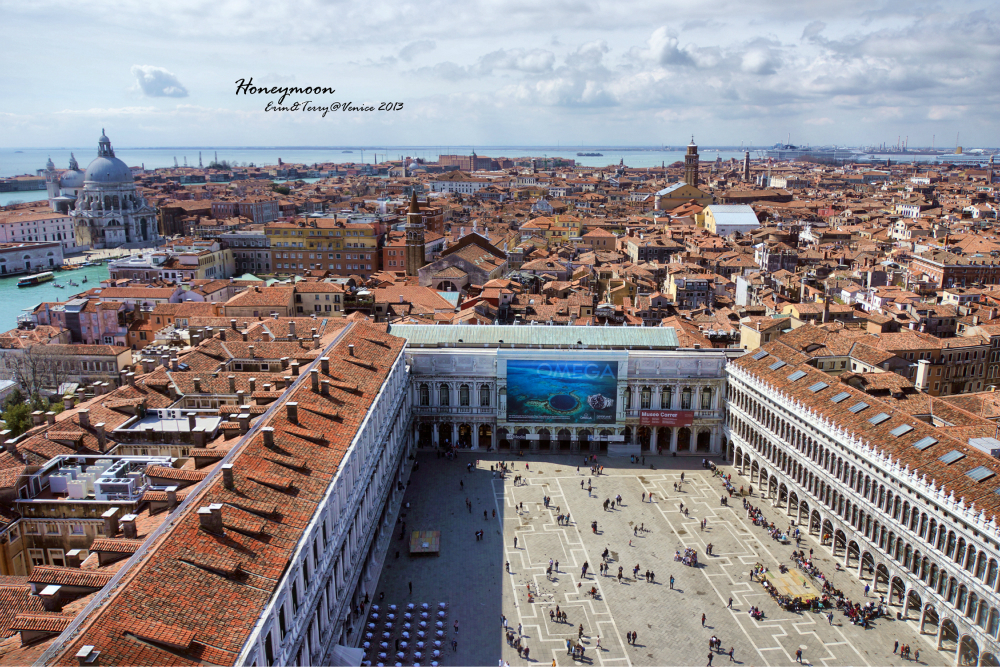 圣马可广场是的半封闭的广场,占地面积接近两个足球场,三面被马可教堂、旧市政大厦、拿破仑翼楼包围,是威尼斯的政治经济文化中心。广场有数以万计的鸽子和当地的民间演奏艺人,偶尔还有带着特色面具的小丑来和你打招呼。登塔或进教堂参观,或是在一角的咖啡厅喝个下午茶,看着广场人流如织,都是不错的选择。