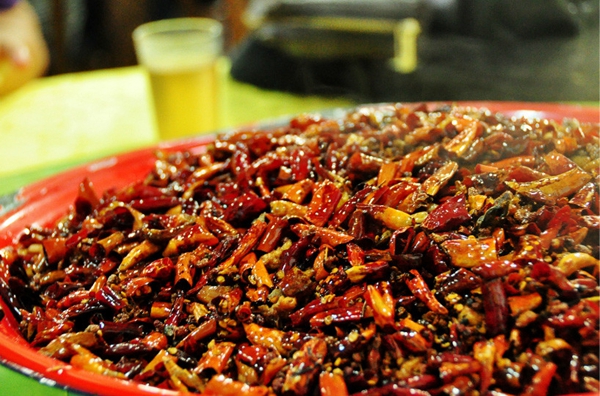 在人们的脑海中,重庆和辣子鸡是捆绑在一起的,辣子鸡不是大块的鸡肉,而是要慢慢从辣椒里翻找鸡丁,这种也算是江湖菜了,鸡丁带骨不过口感很脆。