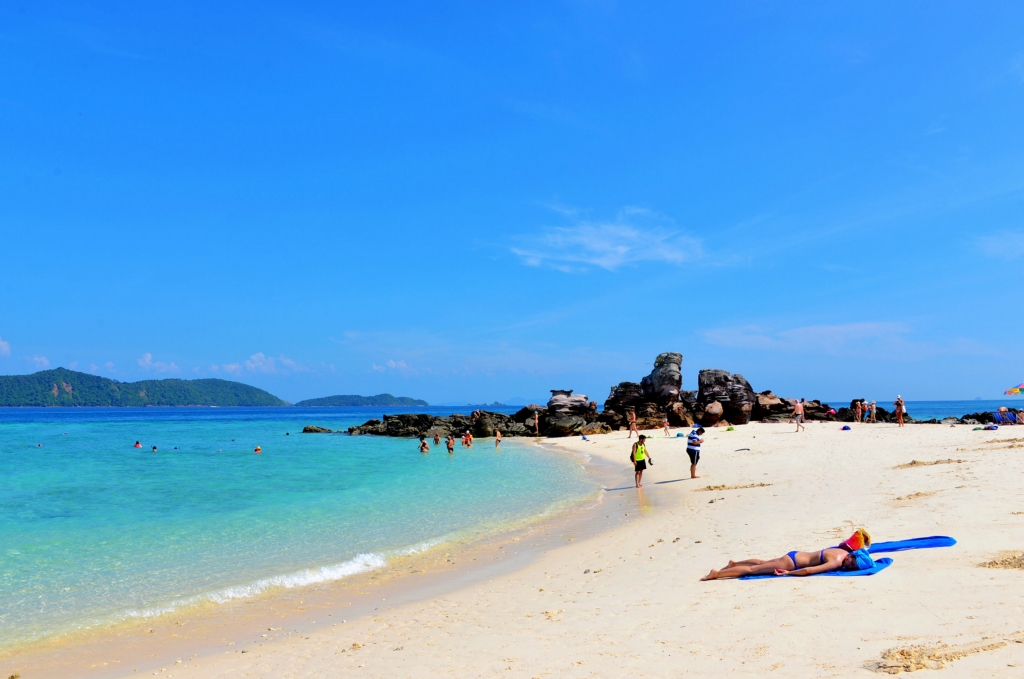 蛋岛是普吉周边最适合亲子游的海岛,由三个岛组成,鸡蛋岛(KohKhaiNok),蓝钻岛(KohKhaiNai)和蛋黄岛(KohKhaiNui)。蛋岛的沙滩平缓,洁白细软,水质清透,浅滩鱼很多,可以提前买好面包片,和小朋友一起喂鱼,亲密接触海洋生物。