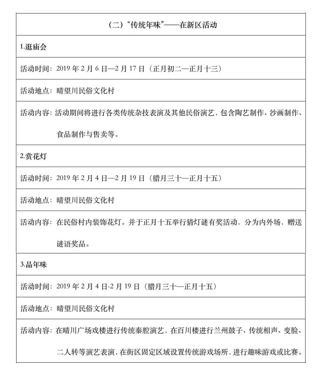 “传统年,在新区”新春欢乐购年会活动汇总表: