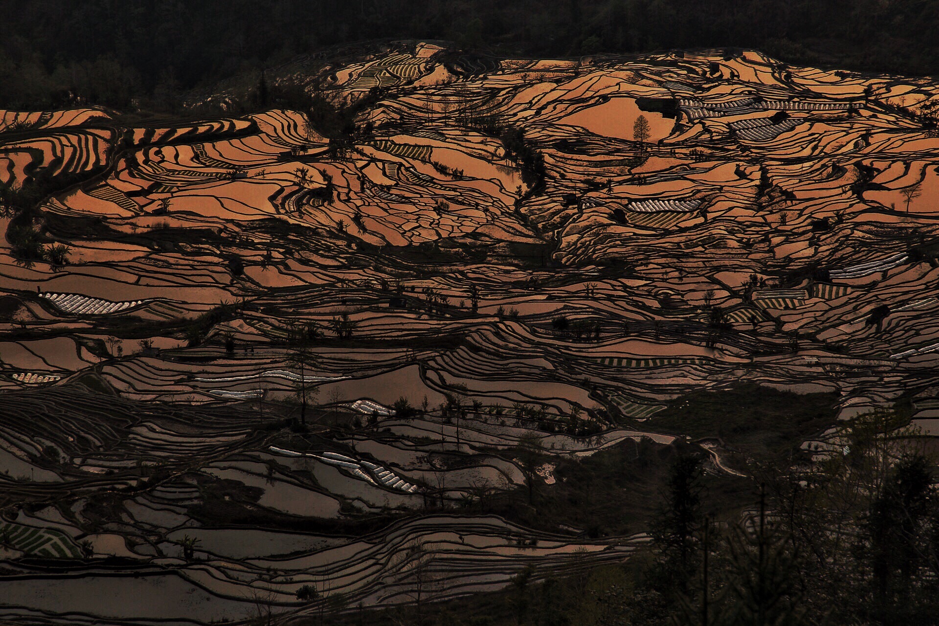 元阳哈尼梯田地处哀牢山南部,是哈尼族世世代代留下的杰作,梯田依地势层层相叠,非常壮观。元阳哈尼梯田主要由坝达景区、老虎嘴景区、多依树景区、箐口景区4部分组成。梯田不仅造型壮观,最为特别的是这里金色的云彩。因为经常被雾气笼罩,日出时便会形成霞光万丈的奇景,霞光和彩云倒映在梯田中。