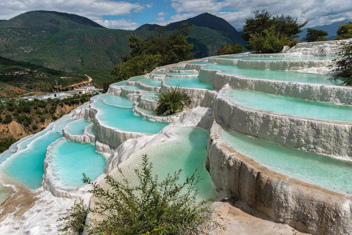 白水台位于香格里拉县三坝乡,距离香格里拉县城约100公里。郁郁葱葱之中露出白色的华台,层层叠叠,仿佛一片白色的梯田。白水台是纳西东巴教的圣地,每年农历二月初八,是纳西族一年一度的“朝白水”活动,四里八乡的藏、纳西、彝、白、傈僳等民族都会到汇集于此,用歌舞和野餐进行祭祀活动,以歌舞娱神,向神灵祈求来年的丰收。