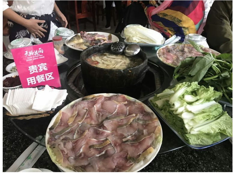 林芝的雅江鱼非常有名,有鱼头小,身子细长的特点,三四十厘米,没有鳞,嘴边有几根长长的胡须,也被当地人叫作胡子鱼。鱼常年生活在高海拔的雅鲁藏布冰雪消融的冷水中,生长非常慢,肉质细嫩,除了一根主刺,基本没什么小刺,可以做鱼生吃。林芝当地可以在餐厅吃到鲜美的鱼火锅,鱼片鲜嫩爽滑,搭配各种时蔬,足以解旅途疲倦。