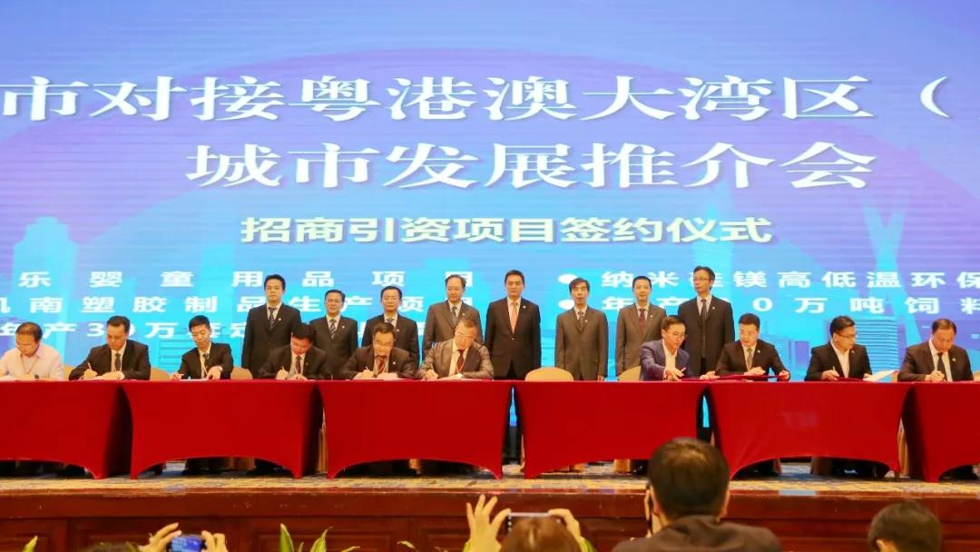 2019年5月23日下午,韶关市对接粤港澳大湾区(广州)城市发展推介会在广州举行,现场签约项目15个,投资额合计达208.21亿元人民币。韶关市委书记李红军,广州市委常委、市委秘书长潘建国出席推介会并致辞,韶关市市长殷焕明主持会议。