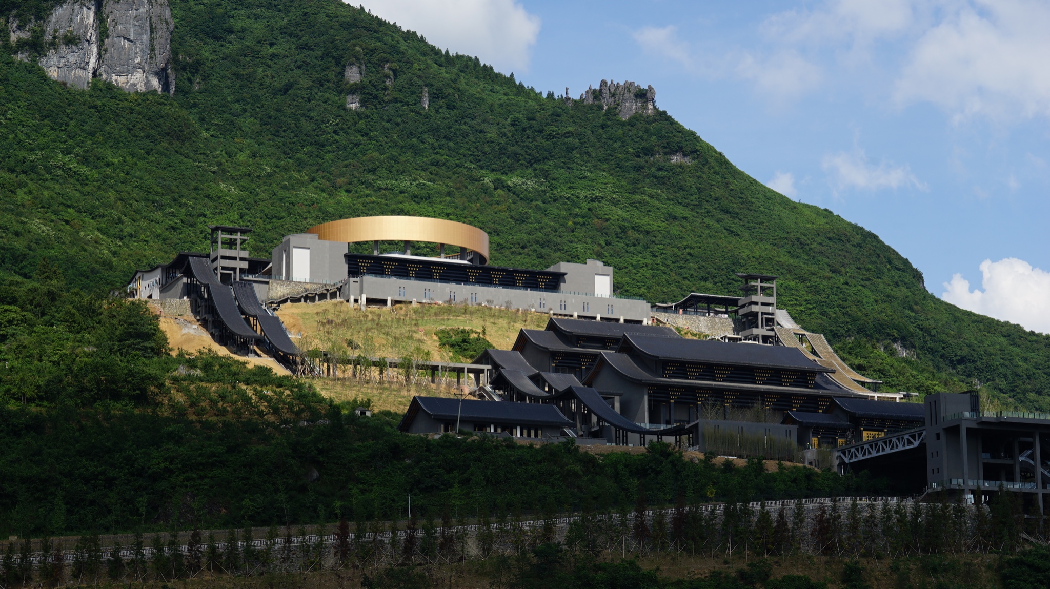 《大地的声音》则汇聚了国内一线艺术大咖,拥有包括向京、展望、傅中望、景育民、于凡、高孝午等艺术家的经典作品,《大地的声音》板块雕塑部分艺术总监卢征远谈到:这些作品成为大地上的灵魂,随着山中霭霭的多维感知在云雾山林中化为艺术之声,声声交织回响,这便是武隆的"音"。