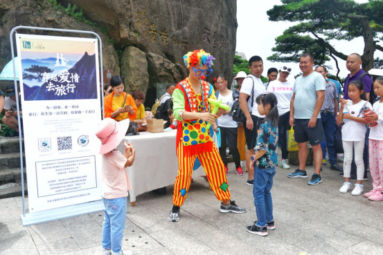 七夕当天,迎客松活动点挤满了游客。活动刚开始,惟妙惟肖的小丑表演就吸引了大波小朋友的目光。许多游客在了解活动详情后,纷纷拿出手机扫码参与话题互动,分享他们七夕黄山之旅的奇趣玩法、心得体验。黄山景区也为参与互动的游客准备了七夕礼物,令他们的黄山之旅增添了意外惊喜。据工作人员介绍,线下活动共持续3天时间,后面两天游客可在西海大峡谷小火车、北海·雲亼山宿等网红打卡点参与互动。