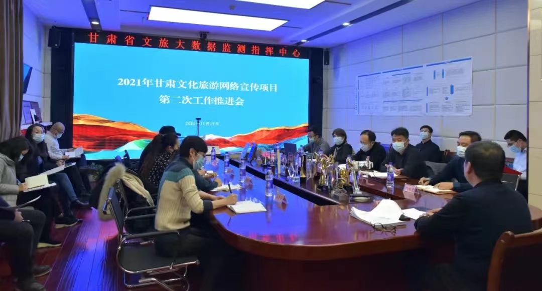 11月19日下午,甘肃省文化和旅游厅科技信息处组织召开2021年甘肃文化旅游网络宣传项目第二次推进会,会议采取线上与线下相结合的方式进行。人民网、新华网、凤凰网、今日头条等网络媒体平台负责人在文旅大数据中心主会场参会,美团、马蜂窝、快手、小红书、哔哩哔哩等网络媒体平台负责人通过钉钉平台在分会场参会,各个媒体平台负责人分别在会上作了汇报。