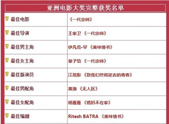 以上是2014亚洲电影大奖获奖名单的最新信息,请您参考。