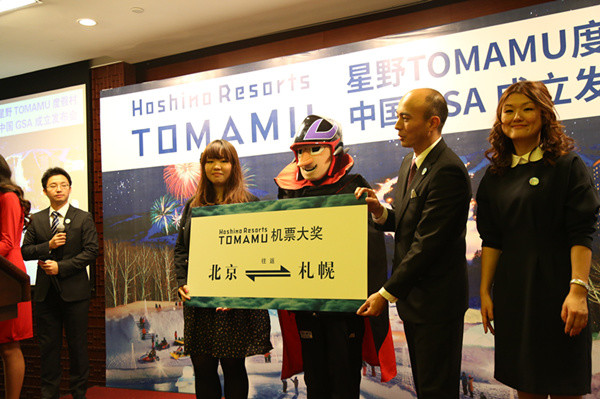 (星野TOMAMU度假村总经理佐藤大介与星野集团中国GSA总经理韩美花为大奖获得者颁奖)