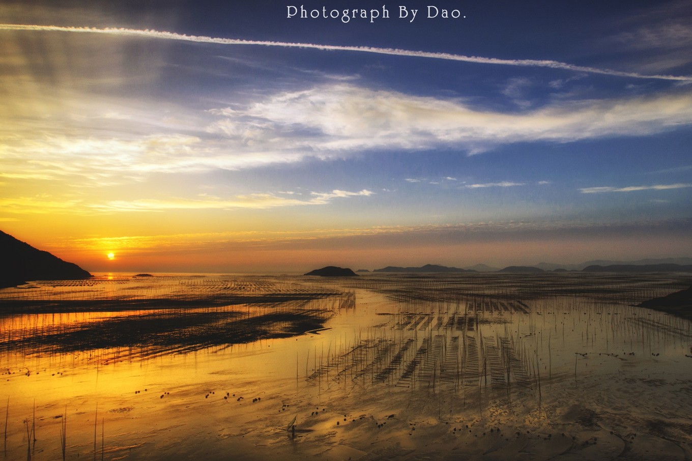3.秋:秋天天高云淡,天气稳定,时常出现小半月摄影人盼望的好天气,相对而言是四季中最佳创作时间。这时候紫菜养殖在海上建场,拉竹竿挂苗绳,紫菜养护,海面船只穿梭,渔民劳作频繁,一派繁忙的景象,沿海全线都有养殖场,满滩满海都是竿影人影船影,画面任你裁减。紫菜苗绳初下水时呈白色,逐渐变黄变绿边黑,这是紫菜生长过程变化,紫菜还会吸收不同光源,产生神秘的色彩。秋天可拍松港北岐、三沙小皓、三沙东壁、三沙古镇紫菜养殖,大嵛山岛海上天湖草场等。