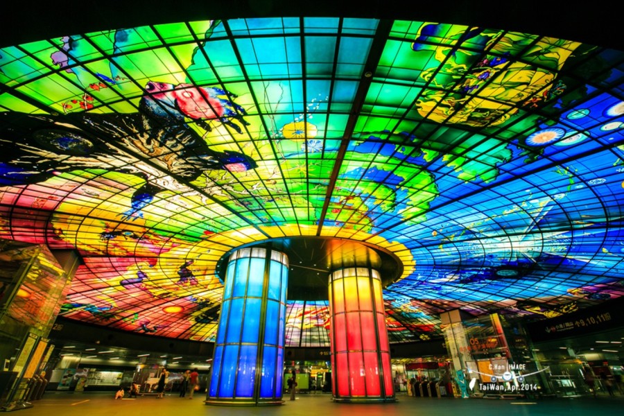 特点:被誉为“世界最美的地铁站”之一,《痞子英雄》曾在此取景。捷运站最有名的就是地下一楼穹顶大厅,原作是水仙大师费时近4年完成的,然后由德国艺工根据原作1:1的比例进行制作的。美丽岛捷运站也因“光之穹顶”荣登了美国旅游网站BootsnAll“2012年最美地铁站”评选中位列第二名。