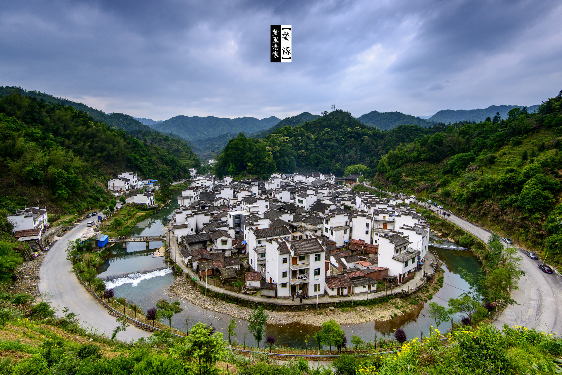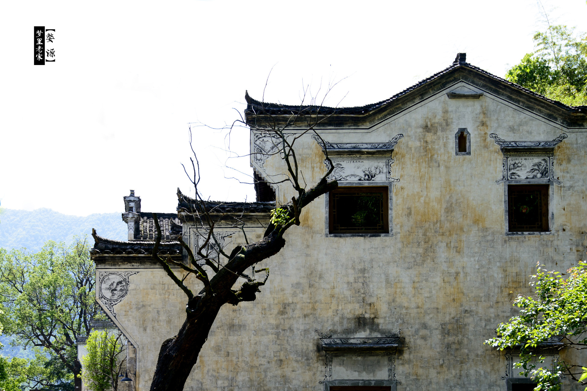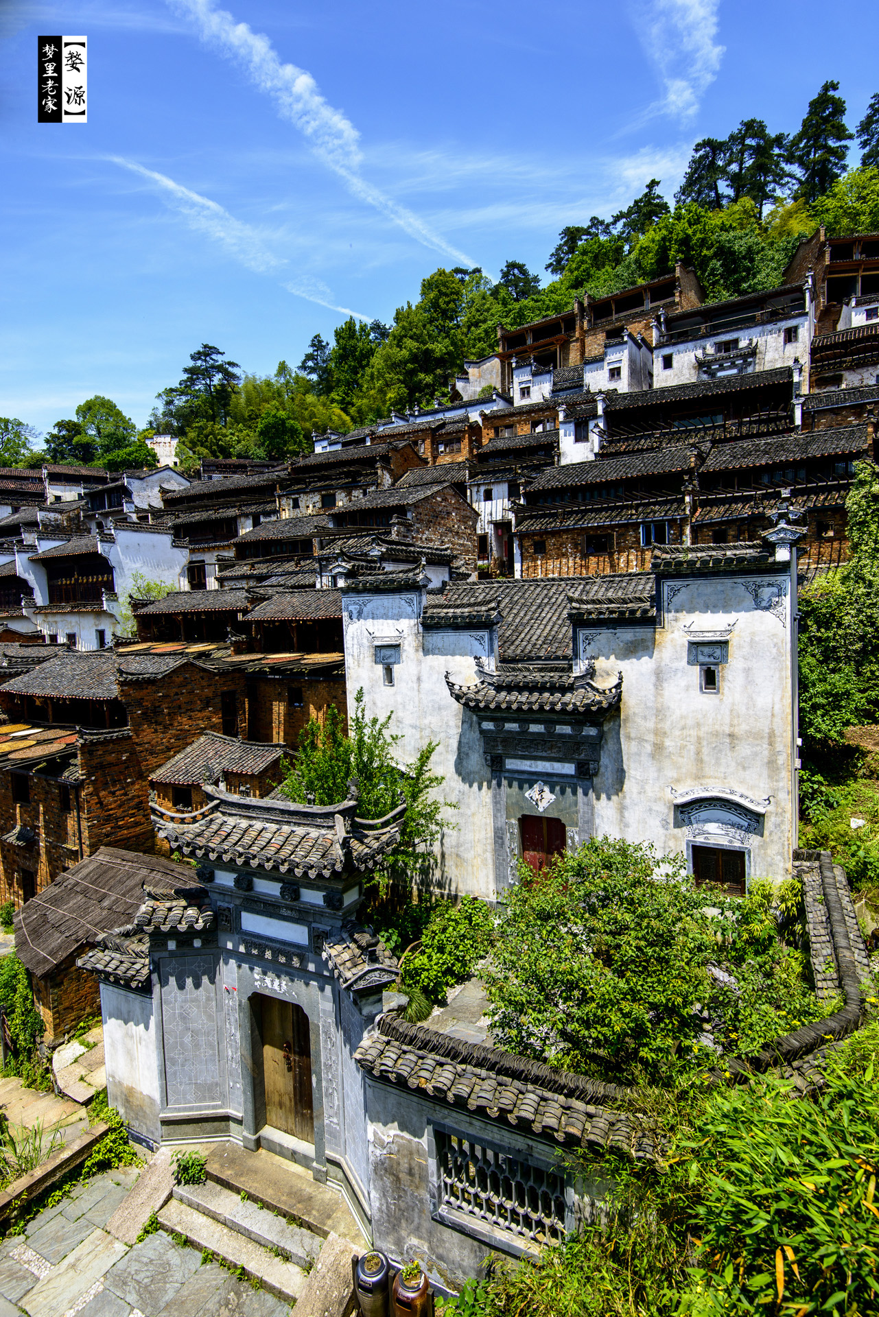 蓝天白云间的青山白瓦。