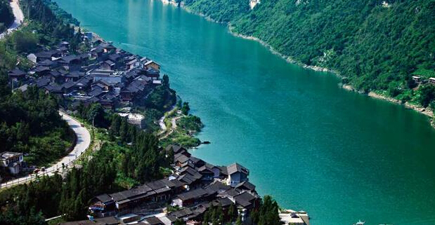小镇一条青石板路贯穿,路旁是吊脚楼,从头走到尾,尽头是比乌江水还绿的绿色。