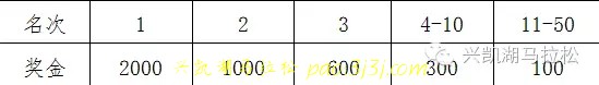 2016兴凯湖马拉松奖金:取男子前50名,女子前20名。