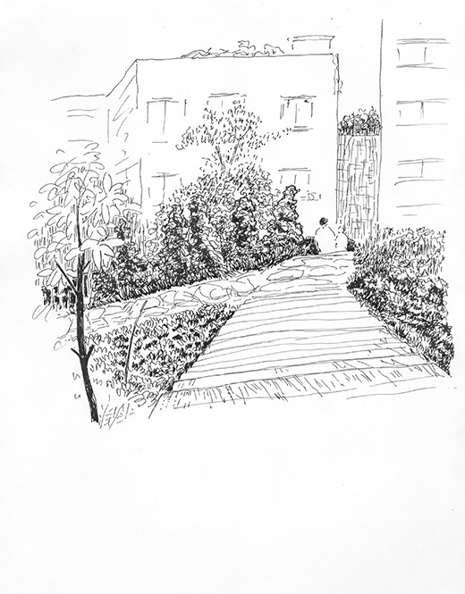 走路的时候,也会觉得新奇。你会忽然发现,旁边的深沟里,亮着星星点点的灯光,原来,那是旁边一幢楼房的一楼二楼甚至三楼四楼。你从一个小桥进到那幢楼里,很可能就已经身处五楼六楼。你逛着街,然后进入一幢居民楼,路过正在做饭炒菜的人家,上一个楼梯,再出来,就是另一条大街。
