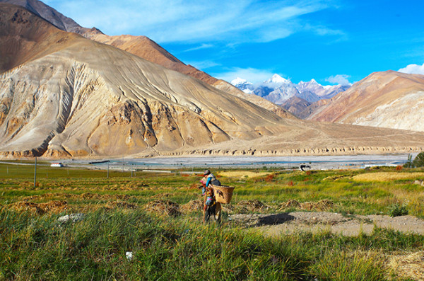 走来了一个尼泊尔人,尼泊尔地震后,大批的尼泊尔人跨过边境来普兰,这个尼泊尔青年在县城找不到事情做,想去科迦村去割青稞,每天能挣100元人民币。刚好有一辆拖拉机,他搭上拖拉机走了,我还在路上,他已经迎面回来了,一路高声放着尼泊尔音乐,他轻轻甩了甩手,表示这里他也没有找到工作。