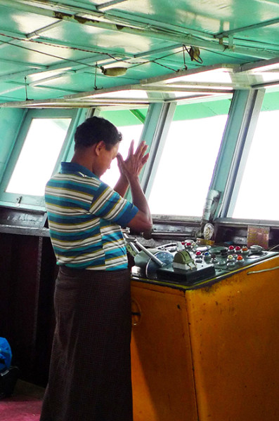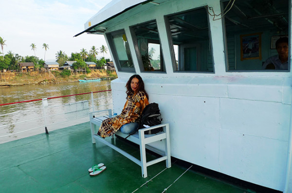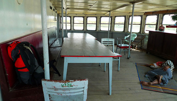 那是整个缅甸之行最舒适的一段旅途:没有奔走、没有灸热、没有喧哗。整艘巨轮,除了20个活人外全是巨大集装箱和麻袋。二十人里,工作人员占三分之一,家属占三分之一,买不起客轮票的老百姓占三分之一。