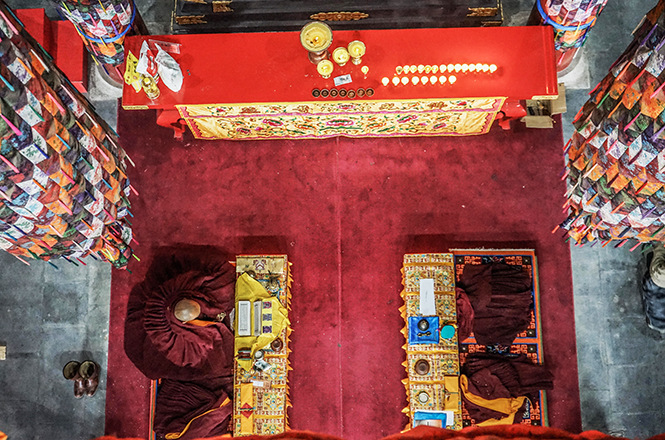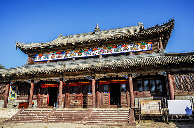 汇宗寺是整个蒙古地区藏传佛教中心,始建于康熙三十年(1691年)。几百年来,这里沉积了多少人虔诚的祈祷,就连阳光中飞舞的尘埃,都沾染了一份笃定。草原上经久不息又刚烈顽固的风,来到这里也变得温柔,它会逗弄每一个铜铃,再将它们发出的笑声带到草原的更深处。彩色的经幡在风中发出的烈烈之声与诵经之声,都被这座古寺珍藏密敛。退出院门,再难寻得。