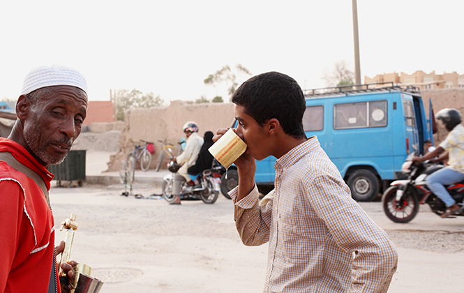 老实说,看到那位枯瘦男人背着巨大水囊以及许多伸向他的手的那一刻,我被深刻地感动了。在干旱燥热的撒哈拉沙漠,水是多么的金贵与稀缺。后来我想,如果是我,也在人群中将手伸向他,他会诧异吗?会将水杯递给我吗?而我,会接过那个并没有清洗干净的很多人共用的杯子,毫不犹豫地喝下那一杯水吗?