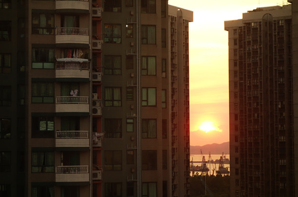 从观塘线转东铁线,出了闹市区,列车离开地下,行驶到地面上。列车两旁是大片的绿野,间或有些成片的民居。阵雨已经停了,阳光又强烈起来,我看着窗外退去的民居,想着,在那些普通的窗口后面,不知有多少这样普通的悲欢离合。