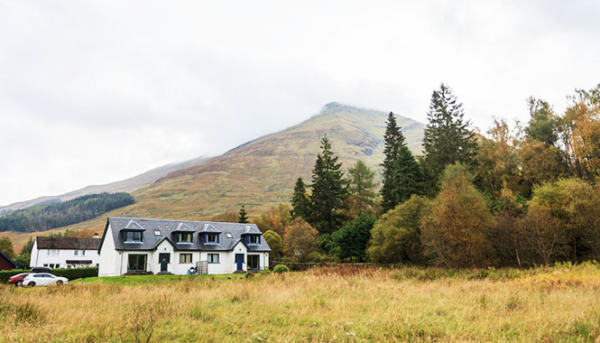 Airbnb标榜的是住进当地人家产生的互动,这根本就是B&B的精髓。谈话可能发生在噼啪的炉火前,或用心准备的早餐时。秋天不是忙碌的季节,昨晚只有我跟邻屋的一对情侣入住。主人John很是宽容,容许邻屋的狗狗Poppy——一只毛色非常漂亮的德牧,也跟他们睡在同一个房间里。我从湖边回来晚了,他们已经吃完要动身。原来大家的计划一样——乘火车沿West Highland Line向北,再回头走West Highland Way徒步回来。John也来关注我的行程,他的家其实就在高地munro之一的Ben More山脚,遇到太多爱好徒步的人,他甚至架了个摄像头在大门口——在facebook加个链接,让大家想知道山上是否下雪了。