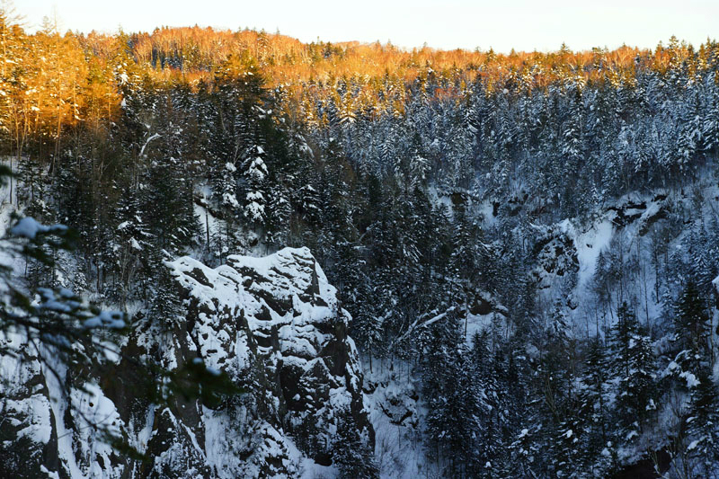 没去过长白山西坡相当于没来过长白山。长白山大峡谷、天池等地保留了长白山的原始风貌。大峡谷有很多神秘的故事,比如野兽出没,巨形脚印……顺着森林里的木板路一直走,大峡谷突然横在眼前。这就是锦江的上源处,亿万年火山爆发奔腾后形成的独特的地貌。总长70多公里的峡谷在岁月的风雨剥蚀中,滋生出千姿百态,垛堞分明的自然形态。峡谷两岸森林茂密,怪石林立,尤其冬天,俨然一幅泼墨画卷。等到夕阳铺满峡谷森林的时候,金黄色的霞光穿过冰冷,给远处的树林披上一层华丽的金衣,色彩明亮又温暖至极。
