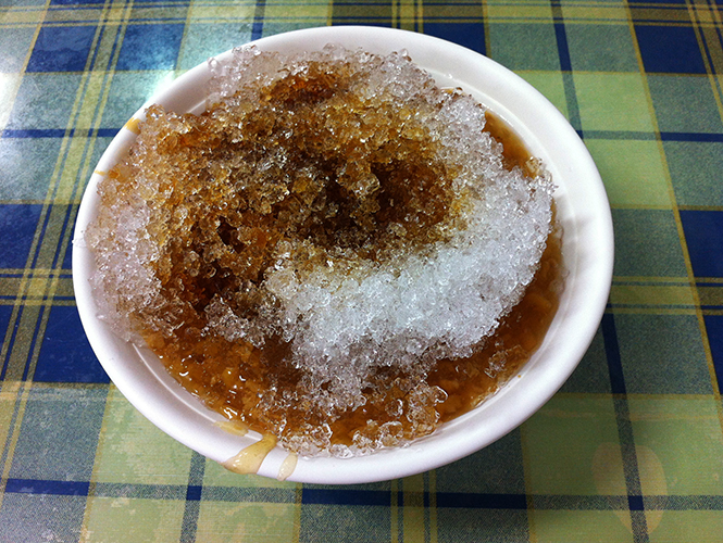 白沙湾没有老虎,倒是有只黄狗,孤单地在沙滩上游荡,不爱搭理人,随后也是头也不回地窜入树丛中。从白沙湾出来,驶向最后一站观光点恒春镇古城。1874年,牡丹社事件爆发,日军侵入恒春半岛,清廷派遣钦差大臣沈葆桢入台与日本交涉并处理海防事务。为了加强军事防御的功能,沈葆桢在“琅峤”(排湾族语“兰花”的音译)筑建城墙,城上设炮台,城外挖壕沟,并因此地四季如春将其改名为“恒春”。如今,恒春古城依然保留着古代城池的格局,城墙虽在地震中曾遭受过严重损毁,但已以“修旧如旧”的技法修复完善。城中还有一处《海角七号》的取景地——阿嘉的家。主角阿嘉在电影中的家原本只是一幢普通的民居,电影大热之后,房主干脆把它改成了民宿,一楼开放参观,出售明信片、袋子等纪念品,门外还设有纪念邮筒,供影迷合影留念。在古城里吃到一种叫绿豆蒜的食物,是用去壳的绿豆烹煮而成,由于像切碎的蒜头,故名“绿豆蒜”,是当地宴席的最后一道甜点,可以搭配粉条吃,还可以加冰。原来绿豆和粉条可以这么搭啊,我不禁大发感叹。