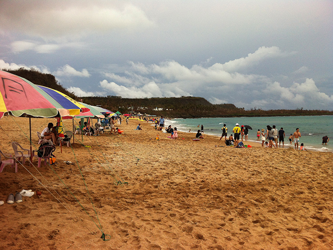 中午司机带我们去了垦丁国家公园内最大的渔港——后壁湖渔港一家海鲜馆子吃饭,邀请他和我们一起吃,他再三拒绝了。酒足饭饱之后,前往被文艺青年和影迷视为“必游景点”的白沙湾。白沙湾位于恒春半岛西岸,入口处立着电影《海角七号》和《少年派的奇幻漂流》的宣传牌。由于这两部深受欢迎的电影曾在此取景拍摄,白沙湾的人气甚至比距离不远的猫鼻头公园还旺,后者是台湾海峡与巴士海峡的分界点。在《海角七号》中,邮差兼歌手阿嘉在海滩中抱着日本演出公关中岛友子说“留下来,或者我跟你走”;以及《少年派的奇幻漂流》的末尾,派和那只孟加拉老虎理查德·帕克终于在“墨西哥海滩”靠岸,帕克头也不回,消失在树丛中……这些经典的场景,都是在白沙湾拍摄的。不过,眼前的白沙湾并没有《海角七号》般浪漫,或者《少年派的奇幻漂流》般决绝,它看起来就是一个普普通通的海滩,海岸线并不算绵长,沙子也不如旅游宣传册中说的那么“纯白透亮”,如果你想舒舒服服地躺着享受日光浴或进行更丰富多彩的海上运动,可能后壁湖渔港附近的南湾是更好的选择。然而,世界各地水清沙幼、海岸线绵长的海滩何其多,但白沙湾仅此一个。它是阿嘉勇敢表白的海滩,是派来不及说再见的海滩,它是被导演赋予了人文视角的自然景观,这也正是它最与众不同之处。