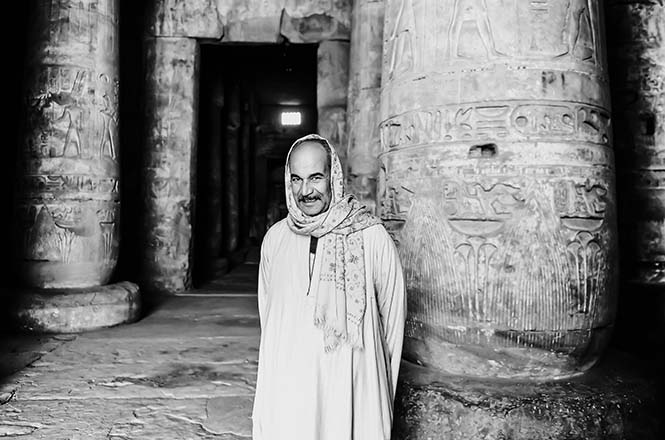 美嘉子和另外一个日本驴友已经在卢克索逛了两天,在我的建议下他们决定跟我一起包车前往这两座游客稀少但极具观赏价值的神庙,美嘉子还特意找到《走遍全球·埃及》指南,看完介绍非常期待,夸赞我眼光独特。即便是冬天,沙漠地带里白花花的太阳还是晒得人昏昏欲睡,先去了最远的阿拜多斯,回程路上再造访丹达拉。