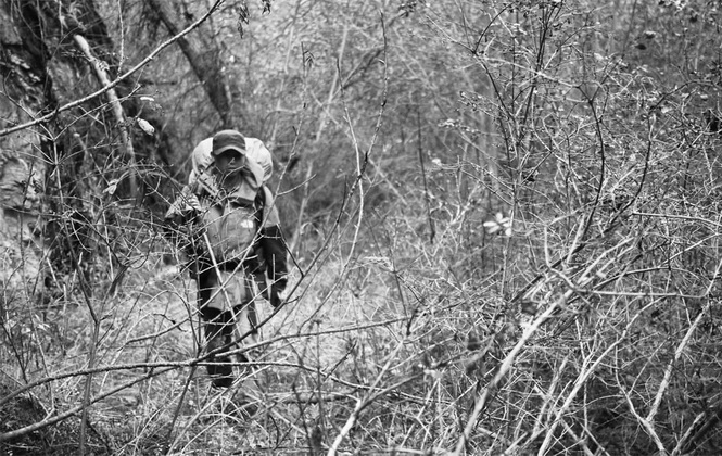 早晨我起床去打水的时候,天还是蒙蒙黑的。我戴了头灯走到溪边,左膝重重地磕到了一块石头上,一个趔趄,看到了小溪那边的两只幽幽的眼睛。我下意识地摸口袋,完了,每天晚上为防身我把刀都是压枕头下的,早晨出帐篷居然没带。我迅速把抓在手上的防水袋缠到右臂上,方便打架。