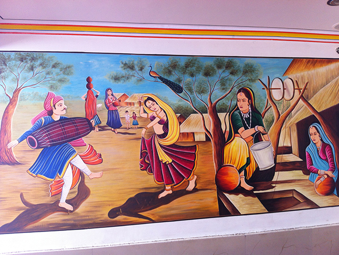(“Rainbow”的壁画描绘了印度人的日常生活场景)