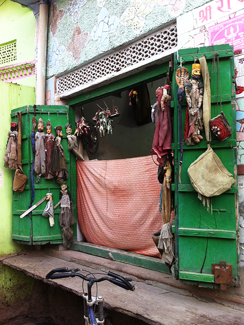 (普什卡街上一个卖手工艺品的窗口,此时是店主的休息时间)