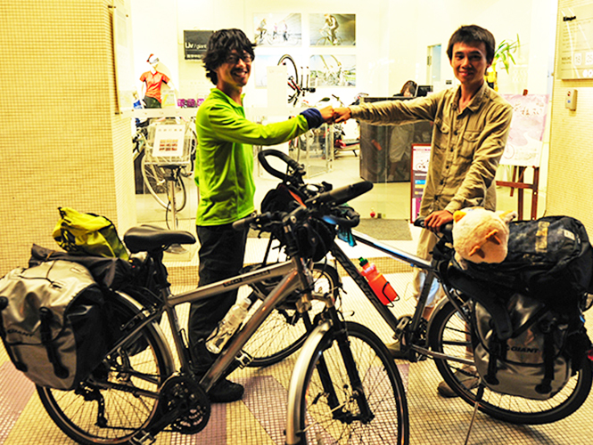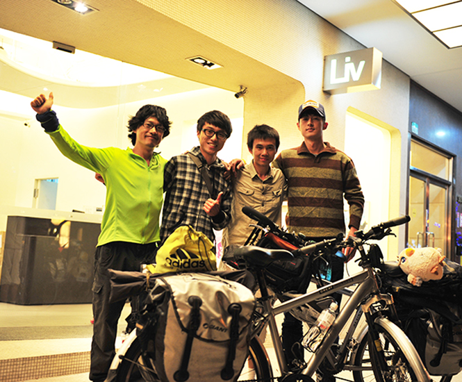 因为各自要赶路,路边这次偶遇显然意犹未尽,小安性格超级豪爽:“这样吧,晚上我和朋友王爵到敦化北路的捷安特店等你们,一起吃饭喝酒庆祝你们成功环岛,好好聊聊。”当时没留联系方式,我们没办手机卡的国际漫游,只能到时不见不散,晚上8点多我和铁人最终到达捷安特店时,发现小安和王爵早已恭候多时,并帮我们一起办完还车手续。