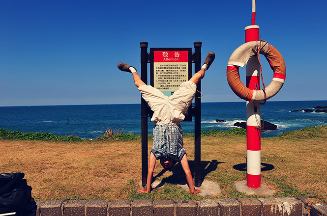 从基隆到台北靠近野柳岬风景区的一家711便利店,我们和小安都在店里买了饮料坐在门口凉亭休息,作为骑友很快熟络起来,小安说他看到我们的单车以及驮包就笃定我们是来环岛骑行的,他自己也骑过:“对台湾的年轻人来说,一定要做的三件事就是,台湾环岛骑行,登玉山,游泳横渡日月潭。”今天他和伙伴周末日常练车,为即将到来的台湾南北纵贯自行车挑战赛做准备,训练内容从台北骑到基隆再返回,非常专业的公路车。我们说从北京过来,立刻激发了他的兴趣,小安一直很向往北京,喜欢首都历史的厚重感,想去紫禁城脚下感受古代皇城的宏伟精致……