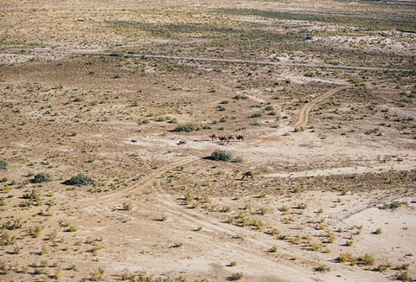 我的计划是先前往花拉子模,然后北上咸海。我不知道一路上会遇到什么,但毫无疑问,旅途会变得更加艰险。我闭上眼睛,听着风沙打在玻璃上的“嗒嗒”声。六年前,我也走过这条公路,那次的运气更差,几乎一直穿行在褐色的沙尘暴中。后来,我们终于到达一家路边餐厅。电路已经被风损毁,阴暗的屋内冷得令人瑟瑟发抖。每个人,包括司机,都点了伏特加。